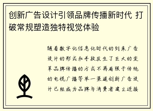 文章摘要:在数字化时代的今天,直播已然成为了内容创新和商业变现的热点领域。直播不仅改变了信息传播的方式,还为各行各业开辟了全新的商业模式。本文将从四个方面深入探讨直播时代下内容创新与商业变现的现状及未来发展趋势。首先,从内容创新角度,直播平台如何通过互动性和个性化内容满足用户需求,推动了新的内容形式...